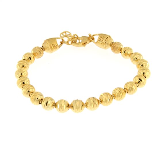 Bracciale in Argento dorato 925/°°° con sfere lapidate dal diametro di 5,5 mm; il bracciale è dotato di una catenella finale (extender) che consente di allungare il tutto fino ad un massimo di 2,5 cm