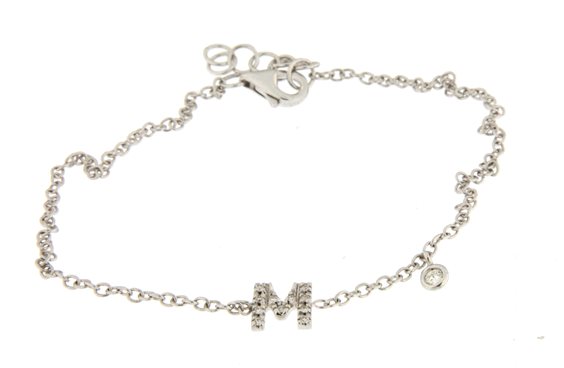 Bracciale in Oro Bianco 750/°°° (18 Kt) con iniziale personalizzabile tempestata di Brillanti Naturali Ct 0,07 SI-G; lunghezza del bracciale personalizzabile da 17,5 a 19,5 cm