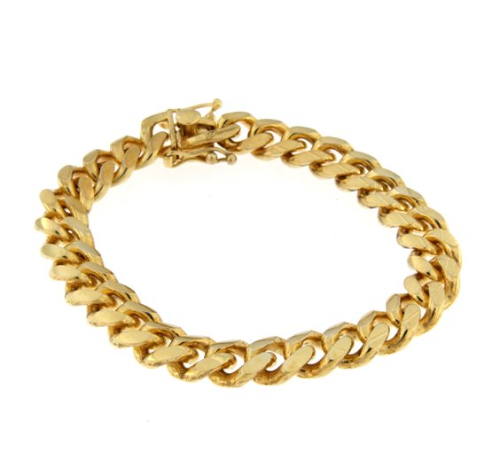 Bracciale a catena, maglia groumette, in Argento massiccio 925/°°°; la finitura colore oro giallo è garantito dall'azienda Desmos, leader nel settore dei gioielli in Argento. La chiusura a cassetta con duplice chiusura di sicurezza ne garantisce la praticità e sicurezza
