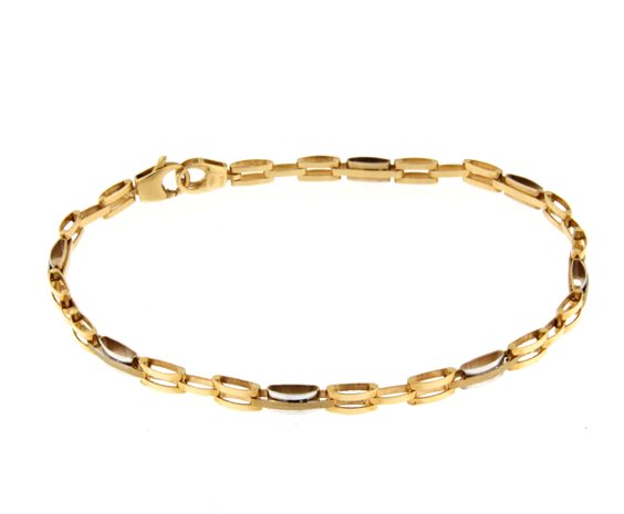 Bracciale ad elementi bicolore in Oro 750/°°° (18 Kt); misura complessiva del bracciale 20,5 cm