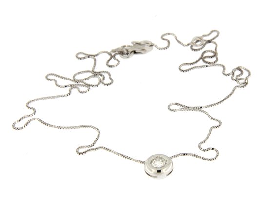 Collana Punto Luce in Oro Bianco 750/°°° (18 Kt) con Brillante Naturale di Ct. 0,14 (VS2-F); lunghezza personalizzabile da 42 a 45 cm
