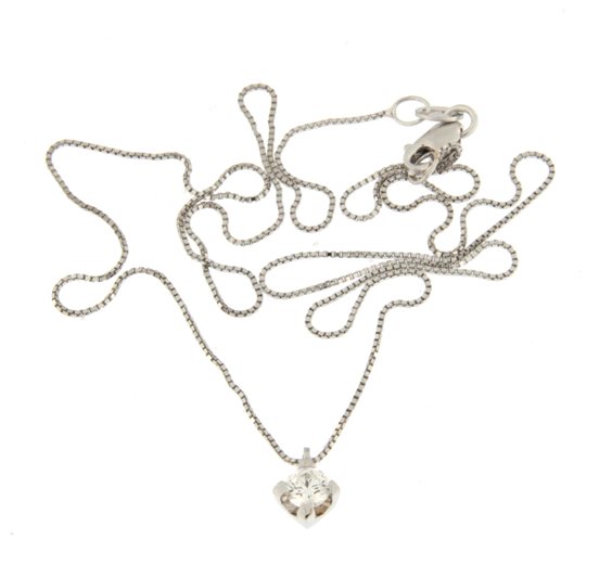 Collana Punto Luce in Oro 750/°°° con Brillante Naturale di Ct 0,20 (VS-F); la catena è lunga 42 cm e personalizzabile presso il nostro laboratorio orafo su richiesta