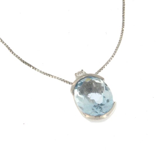 Elegante collana in Oro Bianco 750/°°° (18 Kt) con Acquamarina naturale ovale di Ct.2,20 e Brillante Naturale di Ct.0,06