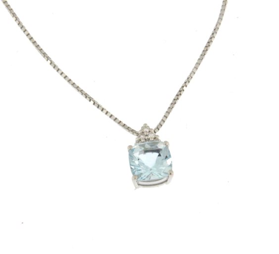 Elegante collana in Oro Bianco 750/°°° (18 Kt) con Acquamarina naturale taglio cuscino di Ct.1,00 e Brillanti Naturali (Ct.0,04)
