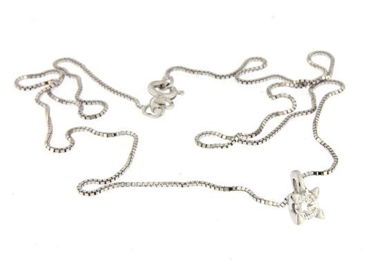 Collana Punto Luce in Oro 750/°°° con Brillante Naturale di Ct 0,24 (SI-F); la catena è lunga 45 cm e personalizzabile presso il nostro laboratorio orafo su richiesta