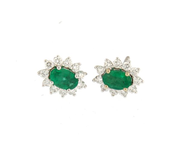 Orecchini in Oro Bianco 750/°°° (18 Kt) con Smeraldi Naturali (Ct. 0,86) e Brillanti Naturali (Ct. 0,55) di purezza VS2 e colore G