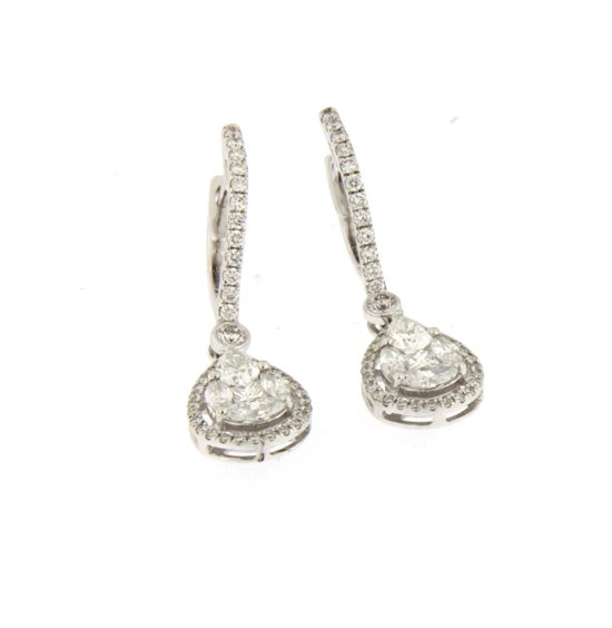 Orecchini Pendenti a goccia in Oro Bianco 750/°°° (18 Kt) con Brillanti Naturali (Ct. 1,34) di purezza VS2 e colore G