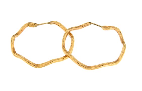 Orecchini a cerchio da donna in Oro Giallo 750/°°° (18 Kt) con canna sagomata e battuta del diametro di circa cm 3,5.