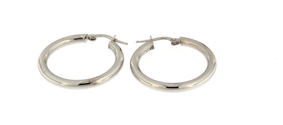 Orecchini a cerchio da donna in oro bianco 750/°°°(18Kt) con canna lisci ; diametro cm 2,5