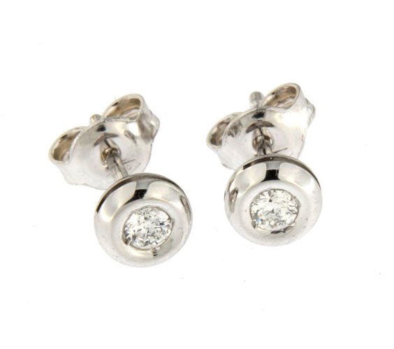 Orecchini punto luce in Oro Bianco 750/°°° (18 Kt) montatura a cipollina con Brillanti Naturali (Ct. 0,18) di purezza VS2 e colore F