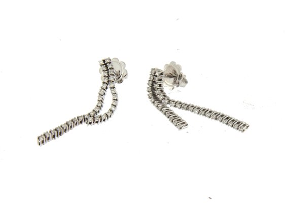 Orecchini pendenti a 2 fili in Oro Bianco 750/°°° (18 Kt) con Brillanti Naturali di Ct.0,32 (SI-G). Lunghezza pendente 3 cm