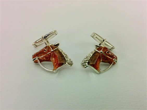 Gemelli dalla forma a testa di cavallo in Argento 925/°°° e smalti a fuoco. Prodotto completamente made in Italy